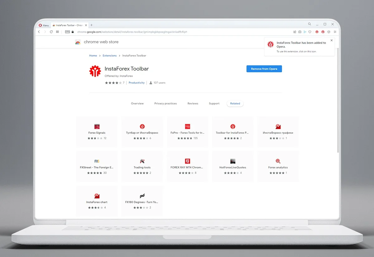 ब्राउज़रों के लिए InstaForex टूलबार