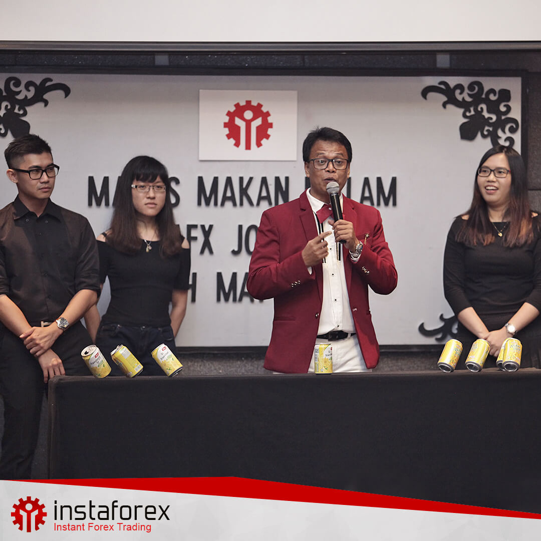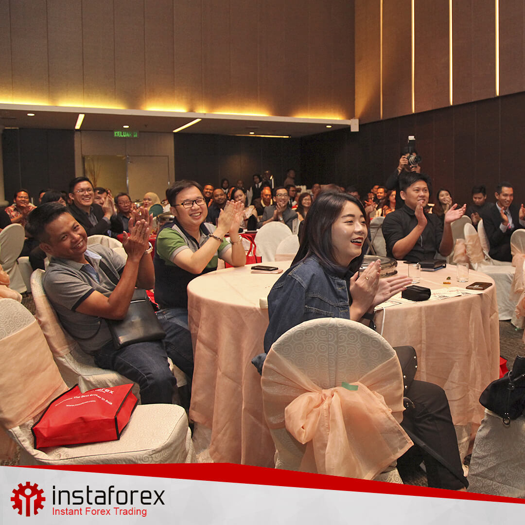 Para tetamu Majlis Makan Malam Pedagang InstaForex Johor menghargai persembahan yang di lakukan oleh artis-artis Malaysia yang terkenal. Aktiviti serta permainan yang menghiburkan telah berjaya menarik minat para tetamu seterusnya menghidupkan suasana yang gilang gemilang.