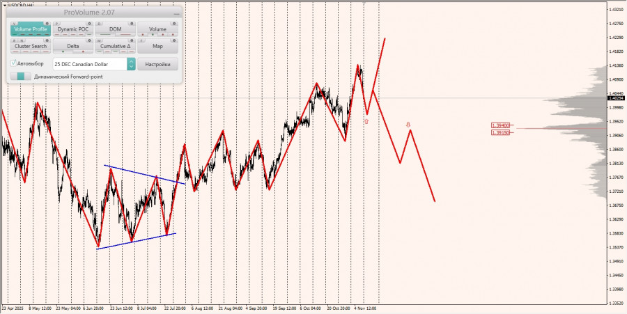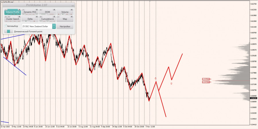 Область выгодных цен на покупку с точки зрения маржинального обеспечения располагается между зонами 1/4 и 1/2, построенными от максимума 06.11.2025.
