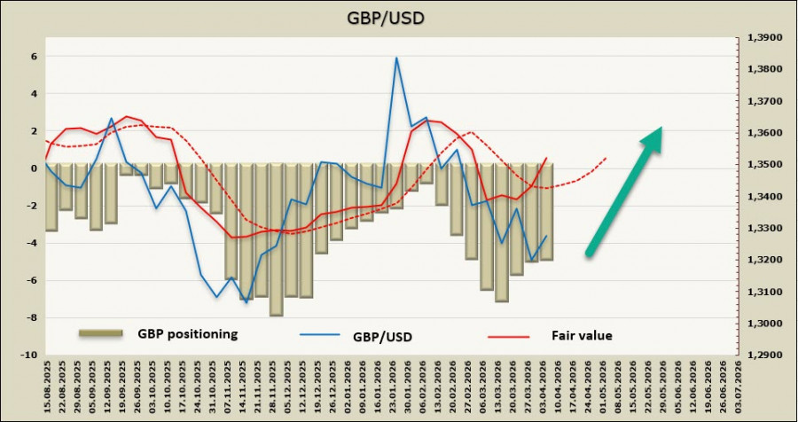 Чистая короткая позиция по фунту сократилась за отчетную неделю на 0,54 млрд, до -4,35 млрд, перевес медвежий, однако расчетная цена под давлением краткосрочных факторов уходит вверх.