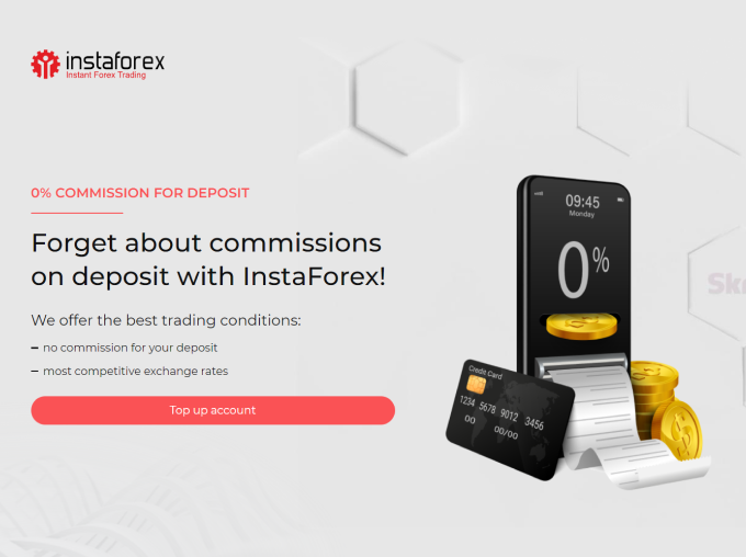 InstaForex ofrece el tipo de cambio más favorable y no cobra comisiones por los depósitos. No importa qué método de trading utilice - la cantidad depositada se acredita a su cuenta de trading en su totalidad, sin comisiones.